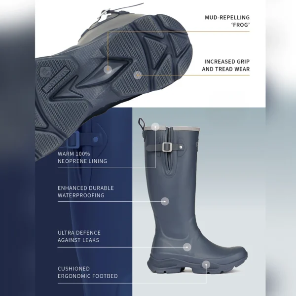 Designed with the equestrian lifestyle in mind, the Ultra Stride boots feature an innovative tread pattern inspired by the frog of a horse’s hoof, delivering unbeatable grip even in the muddiest conditions. The moulded, cushioned insole combined with an insulating neoprene lining ensures your feet stay warm, comfortable, and supported throughout the day, whether you’re working hard in the stables or walking across challenging terrain.
