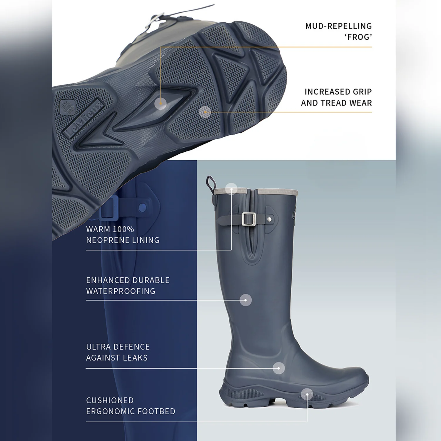 Introducing the upgraded Le Mieux Ultra Stride Wellies, your ultimate companion for outdoor adventures and yard work. Crafted from an improved, premium rubber compound, these handmade boots offer exceptional durability and reliability, whatever the weather.